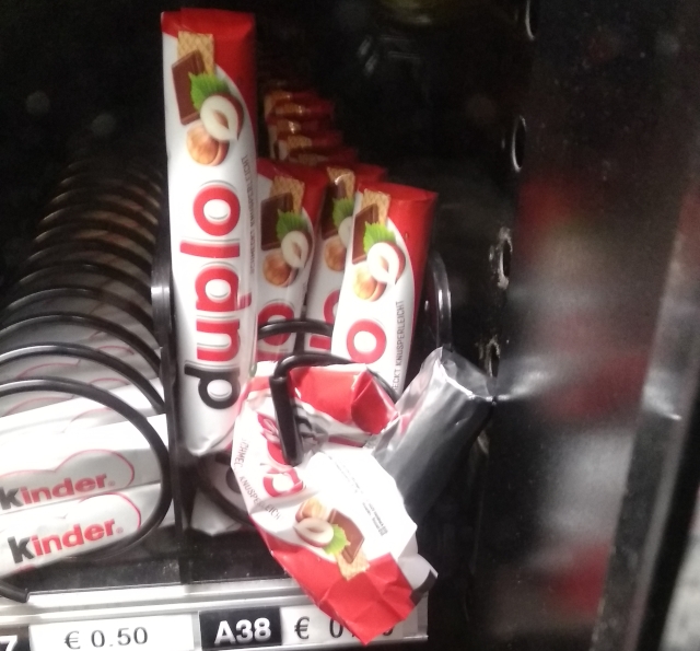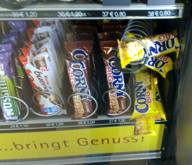 Vending machine at the train station. "You need to eat more fibers" they say, but as we can see, it will all end just up painfully clogged in there.