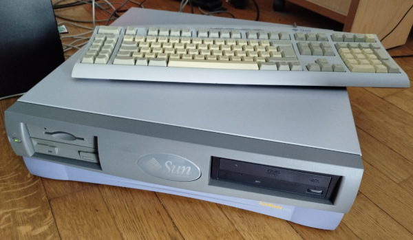 Besides being cheaper and in better shape than other, used Sun machines I came across, what intrigued me about this systems was also its similarity to a plain old PC. This means that I do not yet have to start collecting a plethora of adapaters and special hardware for bus systems I kniw nothing about. While it is a missed learning opportunity, it also means I don't have to collect weird adapters and debug hardware and bus systems I know nothing about, in addition to the machine I know nothing about. For all intents and purposes, the Sun Blade 100 appears to basically be a weird PC that weighs around 17kg for some reason, and has an UltraSPARC CPU.